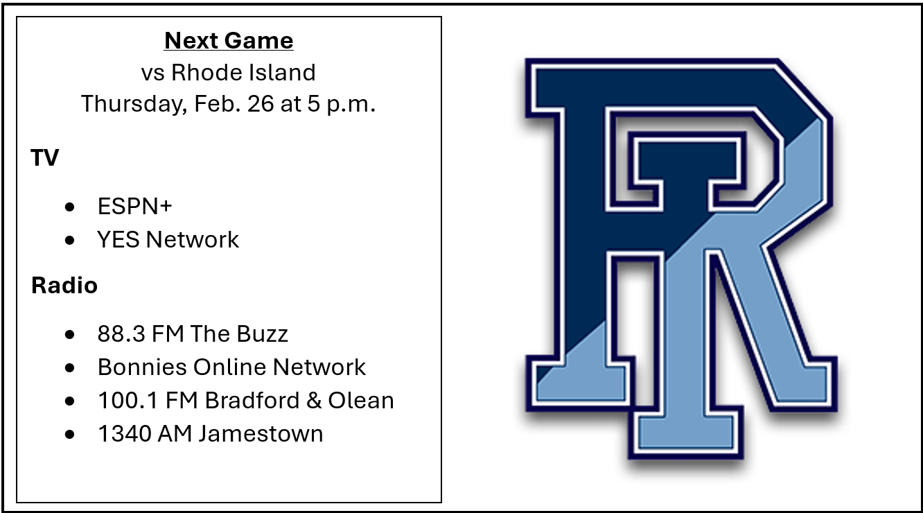 ST. BONAVENTURE, N.Y. — The St. Bonaventure men’s basketball team looks to end its three-game losing streak when they host the University of Rhode Island Thursday evening at the Reilly Center.